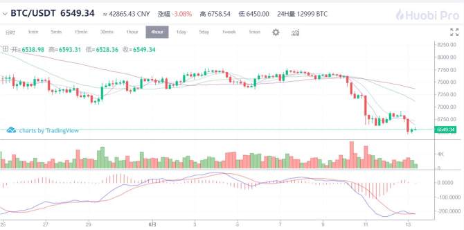 BTC/USDT行情四小时图来自www.huobipro.com火币全球专业站