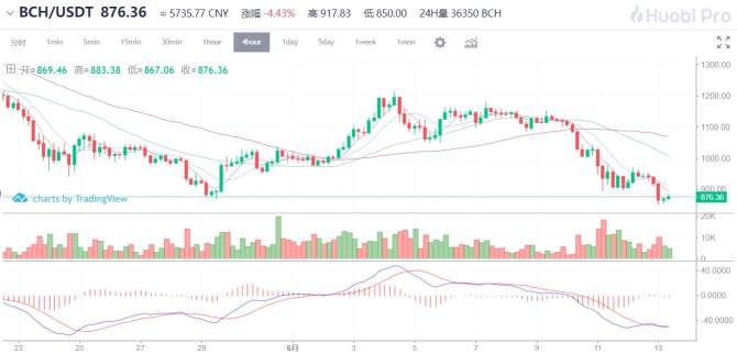 BCH/USDT行情四小时图来自www.huobi.pro火币全球专业站