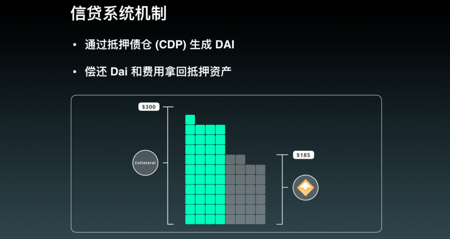 其次,它也是一个自动化的抵押贷款平台,这个和 DAI 的生成机制相关