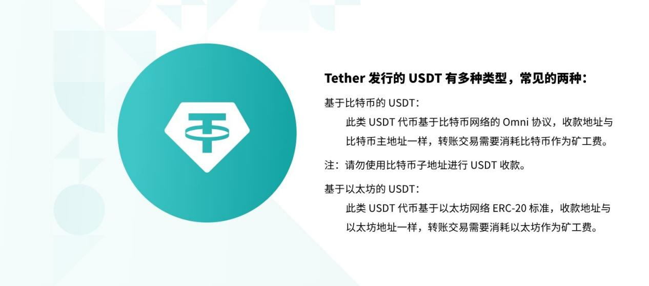 Tether 发行的 USDT 有多种类型,常见的两种: