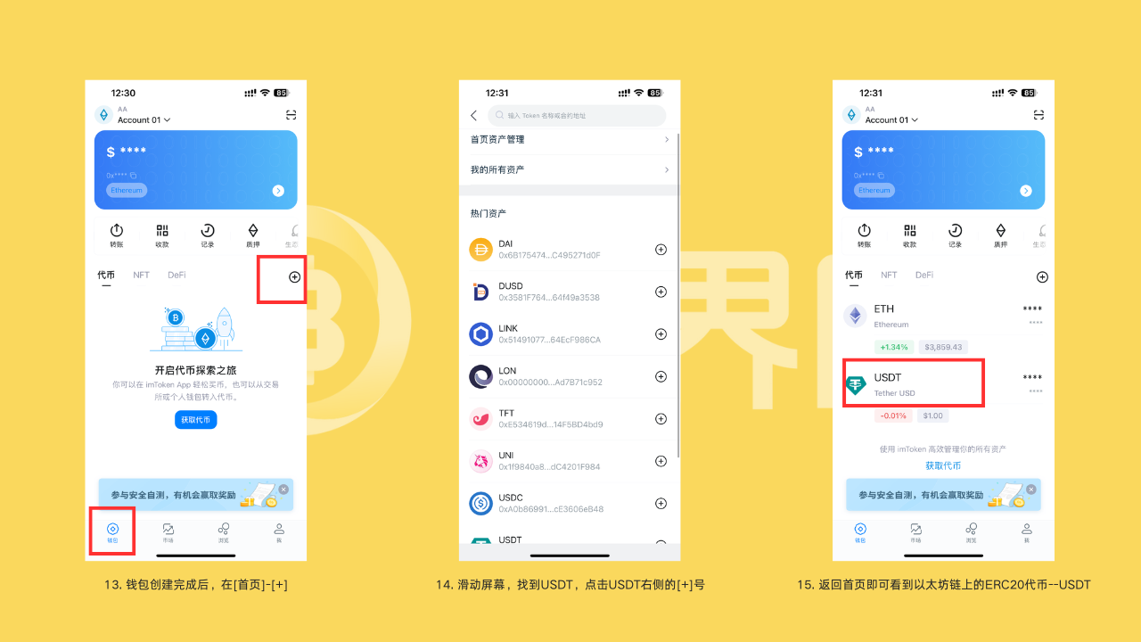 在添加USTD时,首先要创建钱包,创建钱包的教程如下: