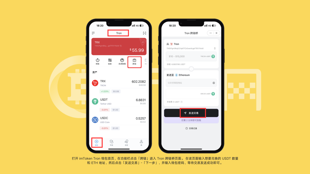 3. 转账 TRC20 USDT,需要 TRX 钱包中有能量和带宽资源,或者消耗少量 TRX 币作为转账矿工费。了解什么是能量、带宽。