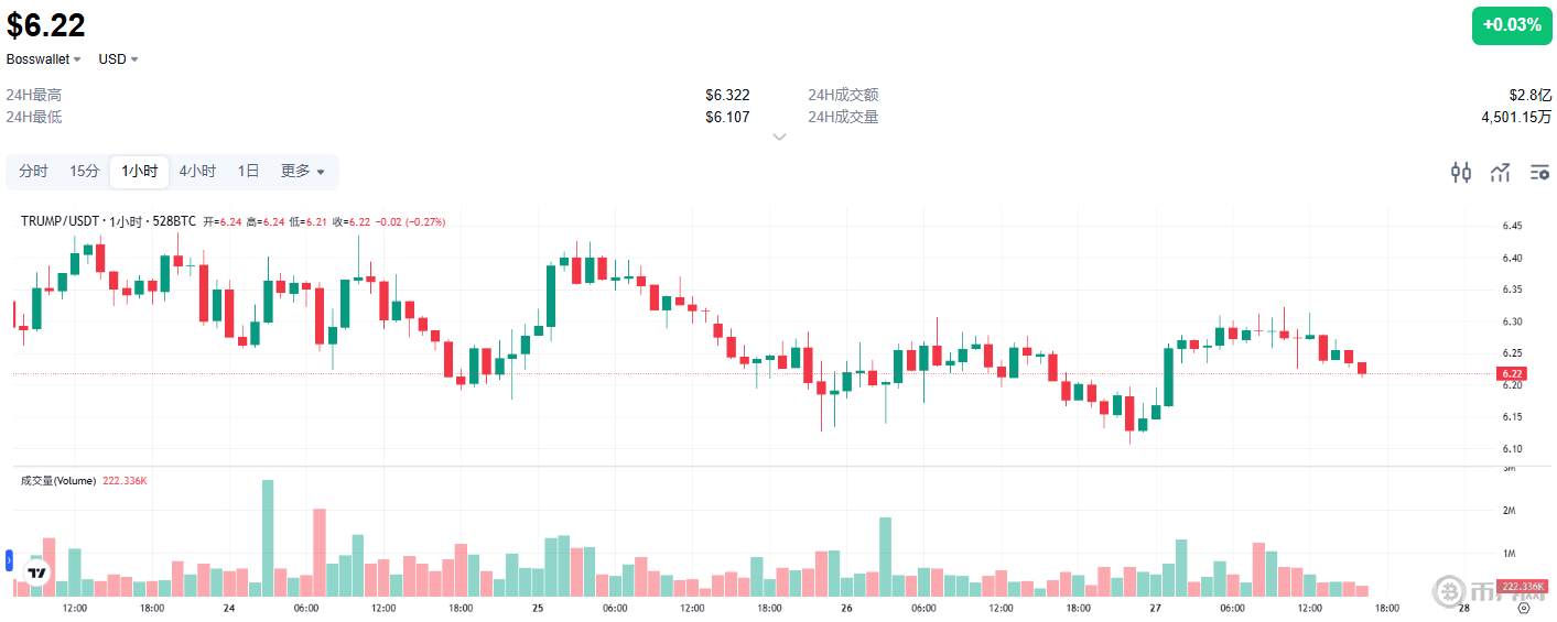 同时,特朗普币发行方的连续公告也加强了市场信心。发行方Fight Fight Fight据称进入了收购Republic.com美国业务的高级谈判,这可能使Republic用户能够使用TRUMP代币进行交易,从而提升代币的实际使用价值。