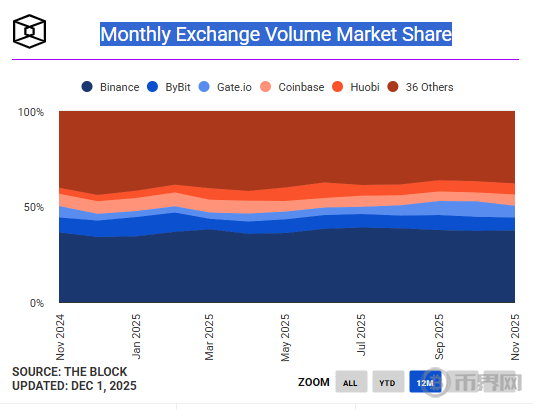 交易所月度交易量市场份额,来源THE BLOCK