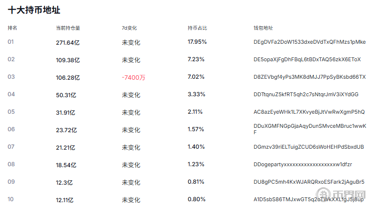 狗狗币10大持币地址变化情况,来源币界网