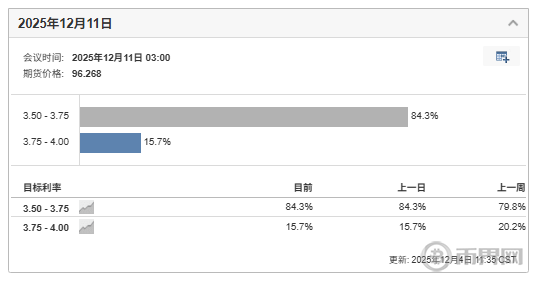 即将到来的美联储12月议息会议被视为确认本轮上涨成色的关键考验。会议关于利率的决定及未来政策指引,将直接影响全球流动性预期,从而左右包括加密货币在内的所有风险资产走势。