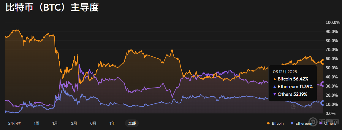 识别潜力币的起点,在于读懂市场的宏观脉搏。当前比特币的主导地位约为58%,历史经验表明,当这一比例跌破55%时,往往预示着资金将开始向其他山寨币轮动。然而,市场已非昔日模样。与2017、2021年主要由散户驱动的“全面开花”不同,当前机构资金通过ETF等“纸面”工具大量涌入比特币,使其与山寨币生态的关联度降低,这可能导致未来的山寨币季(Altcoin Season)会延迟或变得更具选择性。