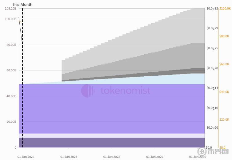 值得投资者高度关注的是其阶段性解锁计划。在主网启动时,仅有约 10.8% 的代币处于流通状态。团队与投资者持有的绝大部分代币处于锁定状态,并计划于 2026年下半年开始逐步解锁,这一过程将持续数年。