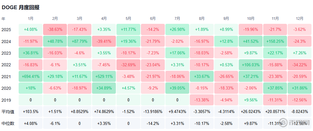狗狗币月度回报,来源币界网