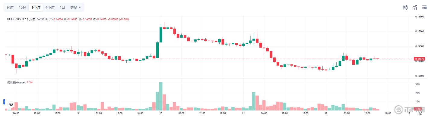 12月12日狗狗币走势,来源币界网