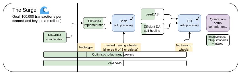 2024 年 Dencun 升级落地后,EIP-4844(Proto-Danksharding)首次让 Blob 成为主网原生数据结构。Rollup 发布 calldata 的成本在主网上出现结构性下降。