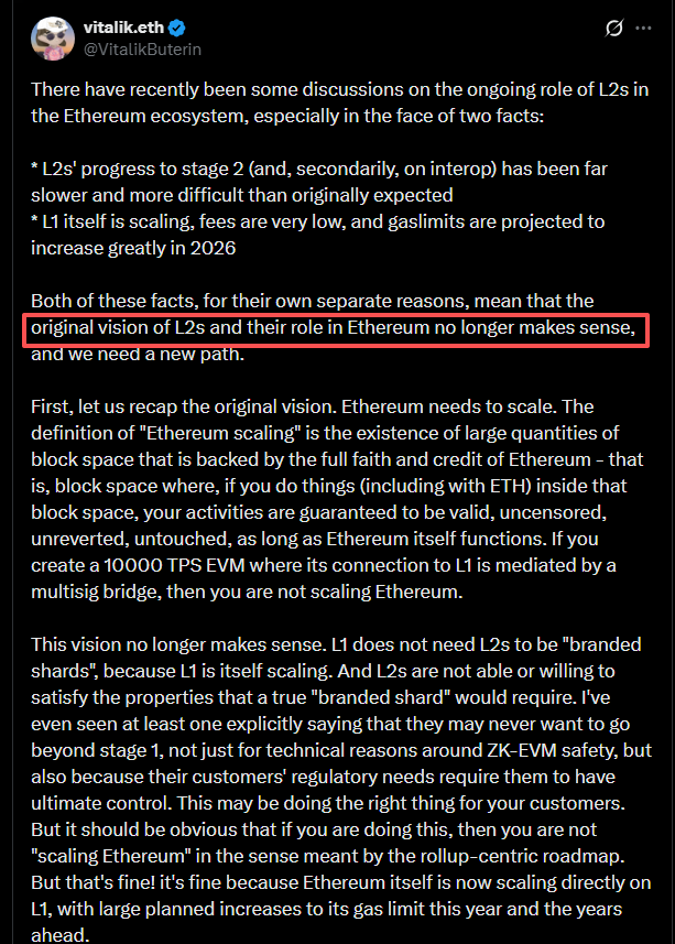 “L2 的最初愿景及其在以太坊中的作用已经不再有意义。”