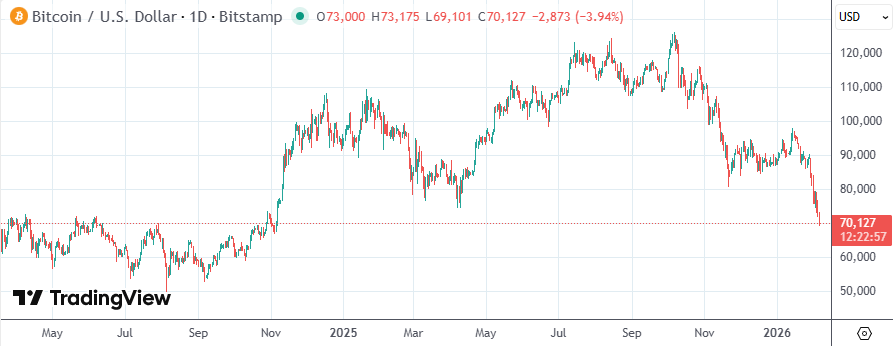 币圈信仰崩塌?比特币失守7万关口,预测市场押注继续下挫