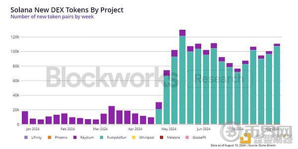 如今,Solana 每周向链上经济引入超过 10 万个新的代币对,这主要得益于pump.fun。Pump 平台已将代币创建成本和工作量降至接近 0,从而引发更多想法以 memecoin 形式进行尝试。