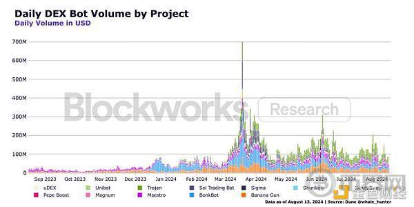 Memecoin 的增长也可以通过 Telegram DEX Bot 活动的增长看出。该类别的交易量超过 300 亿美元,并且在过去一年中实现了显著的多样化和增长。