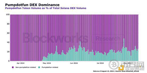 pump.fun代币占据 Solana 每日 DEX 交易量的 20% 以上。