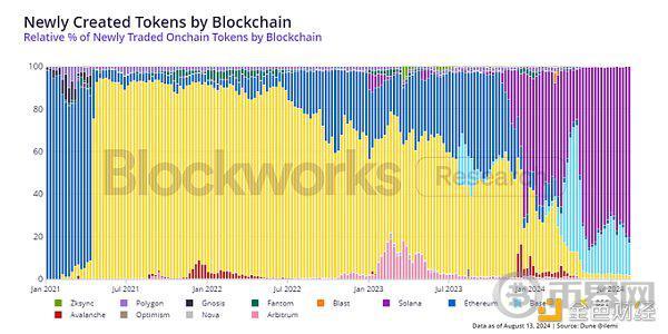 最初,几乎所有代币都是在 ETH 上创建的,随后是持久的 BSC 时代,而最近 Solana 已巩固了自己作为代币创建中心的地位。