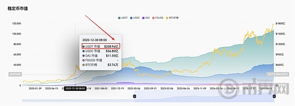 USDT市值从46亿 → 210亿(+456%,2020年1月~12月)