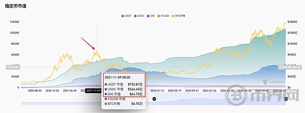 稳定币市值与主流币价同步放大,进入资金高峰期。