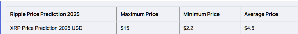 根据 Flitpay 对 XRP 的预测,XRP 可能在 2025 年底达到 15 美元。该平台还预测,在最坏的情况下,该代币可能跌至 2 美元。