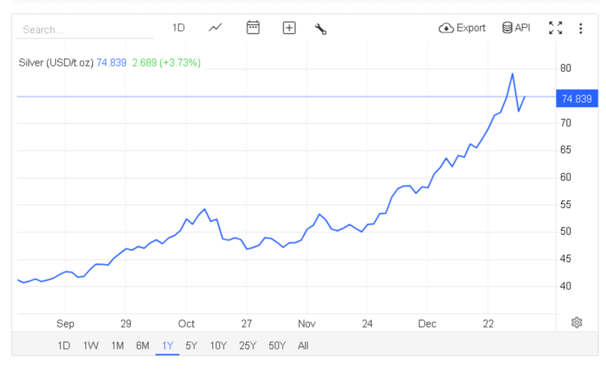 现在,让我们把规模放大。一份白银期货合约控制着5000盎司白银。按每盎司约75美元计算,这相当于约37.5万美元的风险敞口,而你的初始资金只有2.5万美元。这大约是15倍杠杆。价格哪怕只有一点点波动,都会像卡车撞上卡车一样,给你的账户带来巨大冲击。