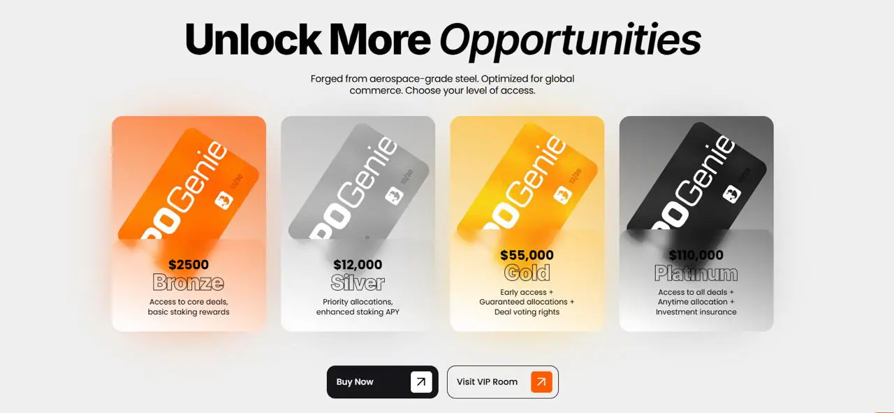 “>抵押奖励和优先分配。黄金(55,000 美元)和铂 (110,000 美元)增加提前访问权、保证分配额度、投票权和完整的平台权益。