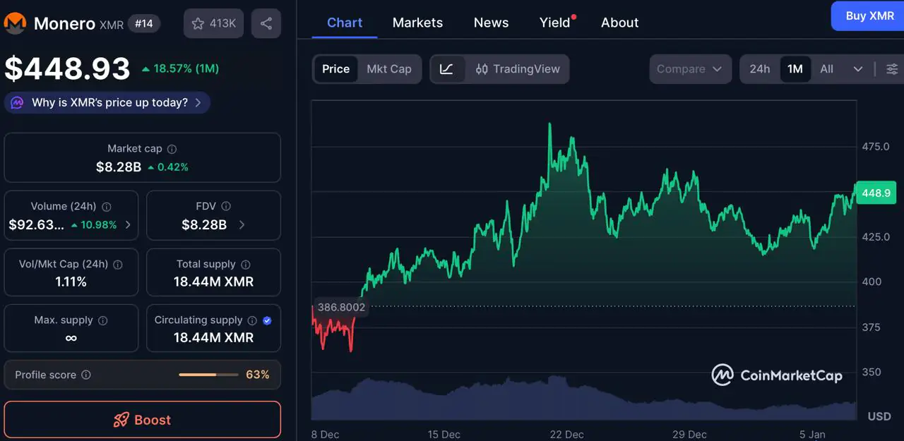 “>山寨币势头强劲。投资者还可以在预售期间进行质押,最高可获得 80% 的奖励,而推荐奖励则可提供额外的 10% 代币奖励。这些机制旨在奖励早期参与者,并鼓励在产品上线后进行更长时间的持有。门罗币 (XMR) 保持隐私领先地位,但 2026 年增长动力有限