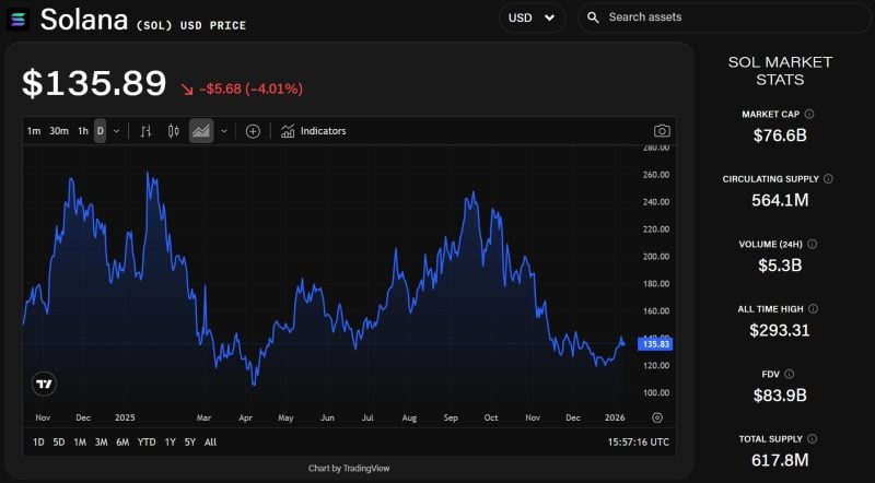 Solana 的交易价格接近 136 美元,较近期 120 美元左右的低点略有上涨,但较去年同期下跌了约 54%,当时该代币的交易价格略低于 300 美元。区块价格数据.