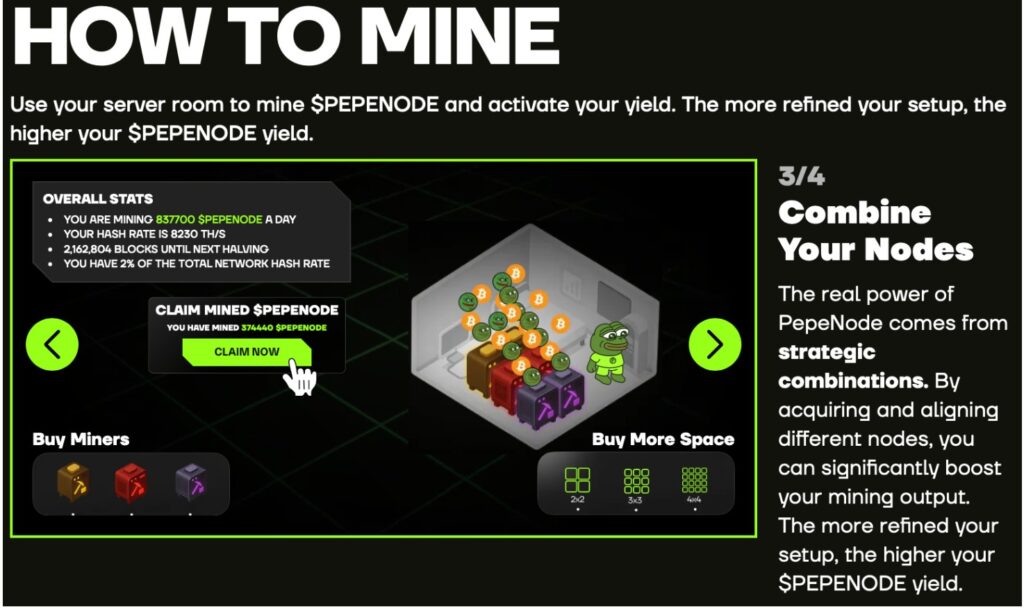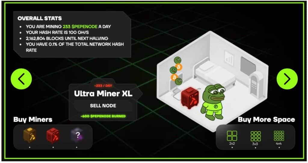 后期上涨主要由新投资者推动,他们发现 PepeNode 正在改写加密游戏领域的规则。该项目引入了首个策略证明模型和真正令人上瘾的挖矿模拟,旨在解决困扰前几代 P2E 项目的可持续性问题。