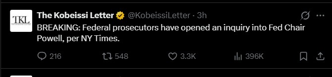 然而,2025年12月18日,联邦公开市场委员会(FOMC)以经济数据和通胀风险为由,决定维持利率不变。仅仅21天后,美国司法部就发出了传票——这加剧了人们对调查与该决定有关的担忧。