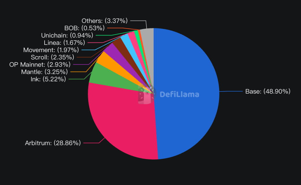 从 DefiLlama 统计的 TVL 数据来看,Base 和 Arbitrum 合计占到了所有 L2 TVL 的近 80%,而剩余不在 Others 一类的 L2 在私募融资阶段的估值合计保守也接近百亿美元,但 TVL 相加也仅有 20 亿美元不到。