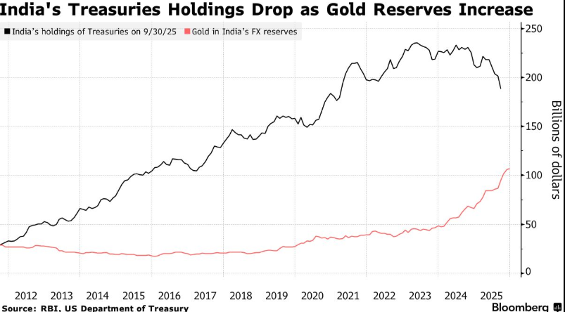 此举的部分考量源于印度央行捍卫受创卢比汇率的努力。由于美国对印度出口征收高达50%(亚洲最重)的关税导致美印贸易协定延迟,卢比已跌至创纪录低点。通过出售美国国债,印度央行可以利用所得资金购买卢比以支撑其币值。
