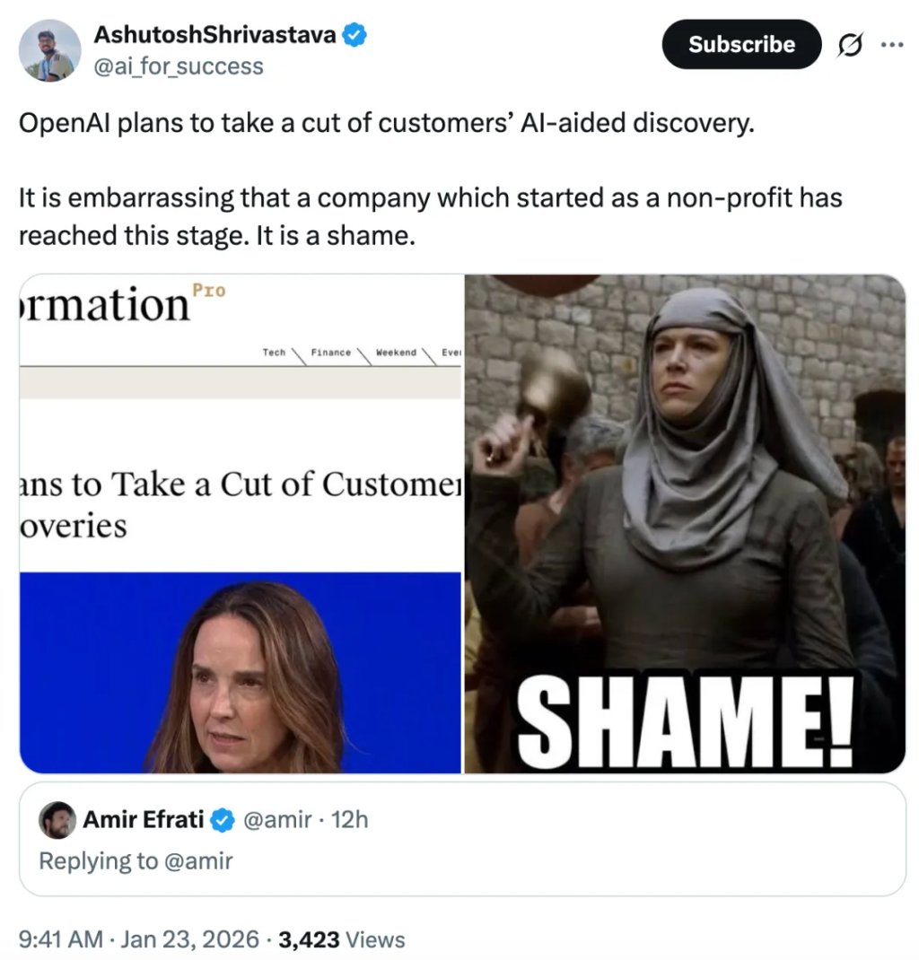 最近大家都在讨论 OpenAI 的收入压力,预测他们今年会改变策略想办法盈利。没想到改变商业模式,是这么个改变法?