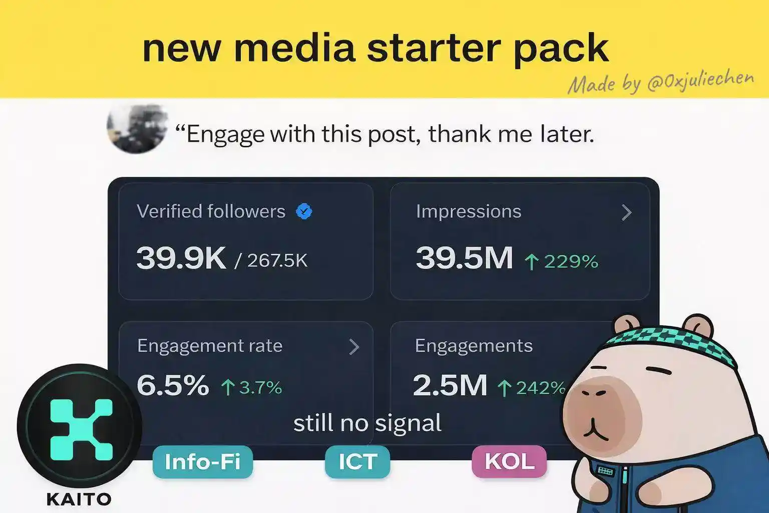 在 X 上每个人都是 KOL,每个月流量都几百万,流量已经不再值钱。值钱的是注意力、是「相信」的力量,是稀缺的权利。