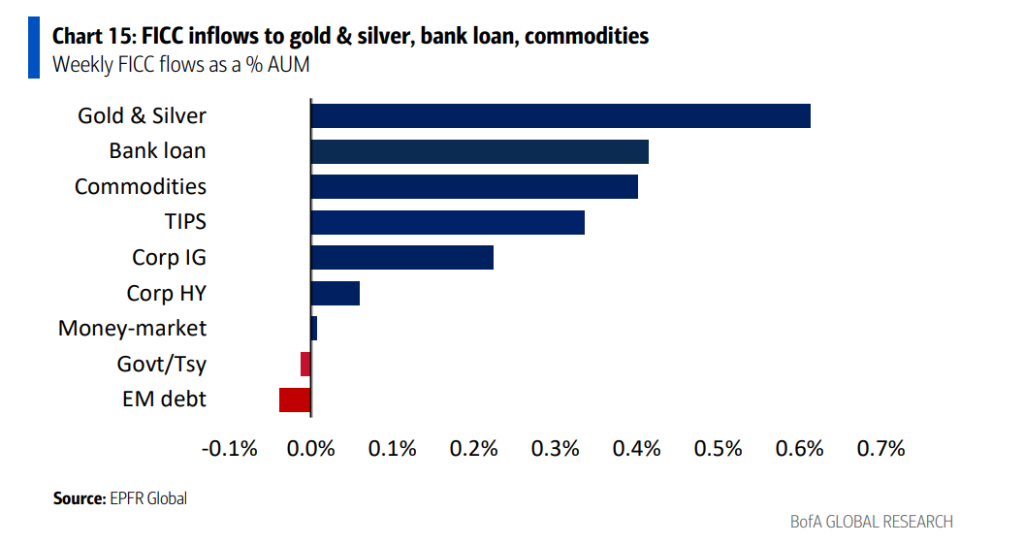 黄金: 持续受追捧,流入49亿美元。