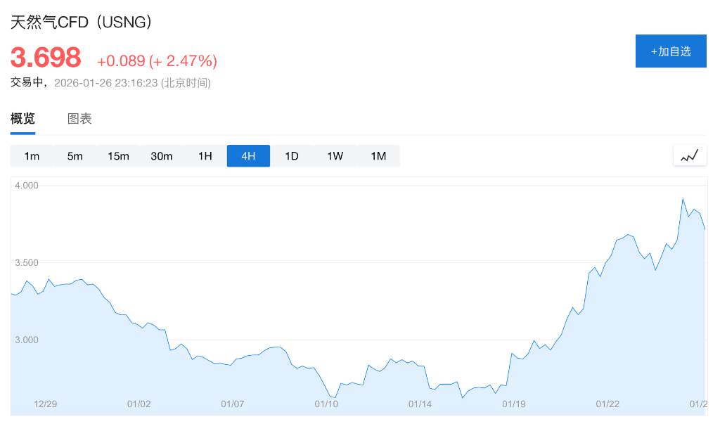 据媒体报道,截至当地时间周一上午,已有约82.3万家庭与企业断电,其中超半数集中在田纳西、密西西比与路易斯安那州。冰雪损毁了大量配电线路,并导致全美约12%的天然气生产中断。在持续严寒天气预期下,天然气价格一周内已累计上涨70%,创下自1990年有记录以来的最大单周涨幅。