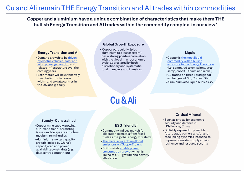 铝则被花旗视为结构性更强的多头品种。受制于中国电解铝产能上限、电力约束以及数据中心与电力基础设施竞争用电,花旗认为铝的供给弹性长期受限,而需求端则持续受益于能源系统重构。