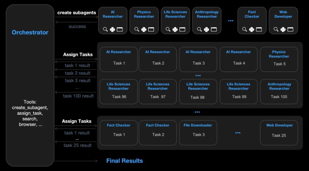 PARL 使用可训练的协调器代理将任务分解为可并行化的子任务,每个子任务由动态实例化的冻结子代理执行。与顺序执行代理相比,并发运行这些子任务可显著降低端到端延迟。