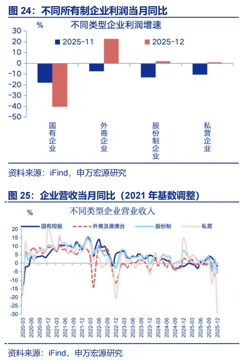 总结:当前成本压力较大仍是约束利润修复的关键,2026年“反内卷”政策或加速推进,后续重点关注政策对工企成本压力的改善效果。不同于供给侧改革,本轮工企盈利压力加大主因下游内卷式投资,导致刚性成本压力上升。反内卷政策推进以来,产能利用率偏低问题已有改善迹象,中上游部分工业品供给回落;但年底工企成本压力仍较大,政策效果有待进一步体现。往后看,反内卷政策进一步落实落细,且企业加快清偿款项约束投资上行,后续成本压力有望逐步缓解。但需关注上游价格“超涨”对企业盈利的负面效果,因为下游将同时面临刚性成本、弹性成本的双重压力。(详见《“反内卷”:市场可能误解了什么?》)