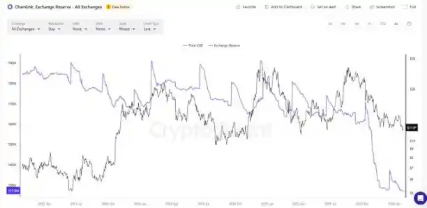 新钱包的买入潮,与 CryptoQuant 数据显示的 10 月至 11 月交易平台 LINK 余额骤降高度吻合。