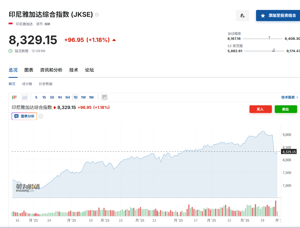数据显示,外资2025年全年净卖出10亿美元印尼股票。印尼盾上周创下16985兑1美元的历史低点,本周回升至16800附近。