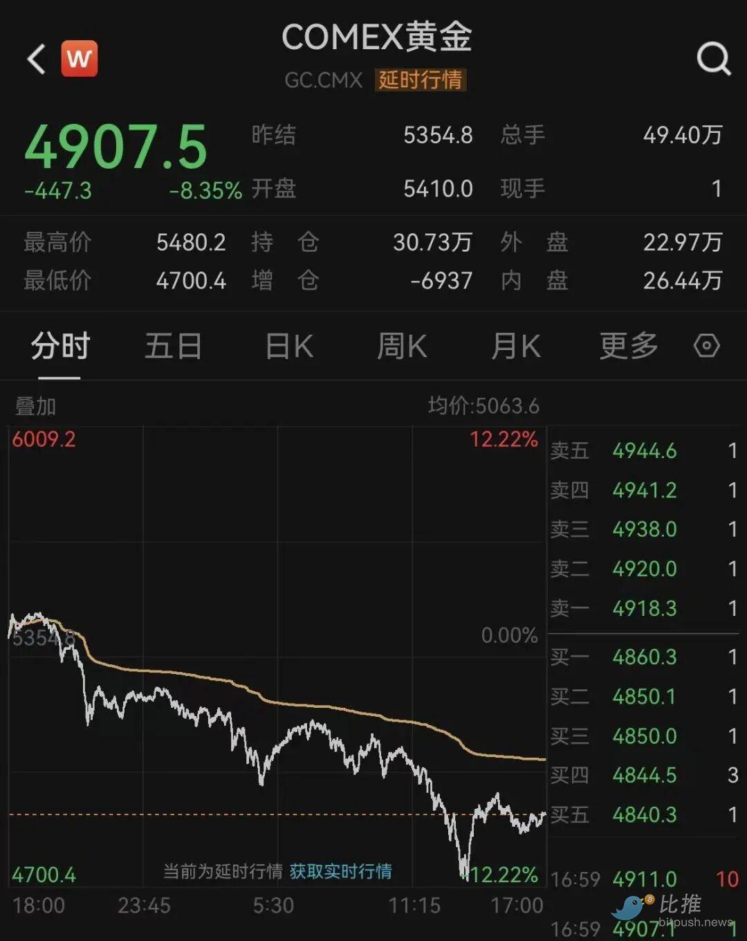 强制性平仓: 白银市场因其高杠杆属性,在价格跌破关键支撑位后引发了大规模的程序化止损。根据估算,周五金银市场的市值缩水高达7.4万亿美元,这种规模的抛售已演变为“流动性收缩”,投资者不得不通过卖出流动性最好的金银来补充其他资产的保证金。