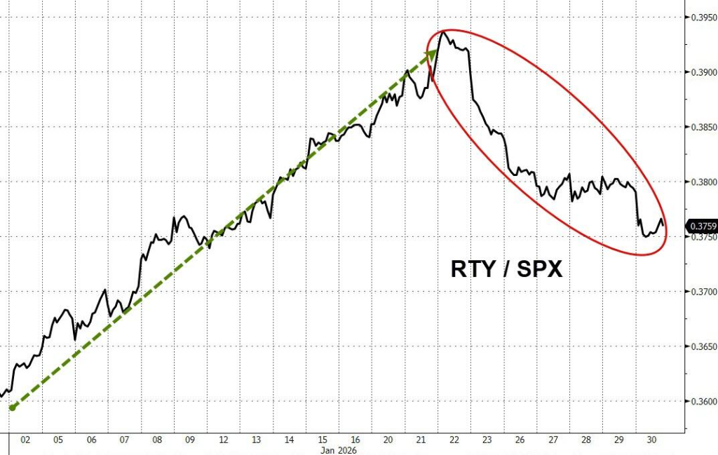 (小盘股指过去6个交易日表现逊于标普500指数)