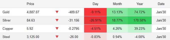银落跌幅达 17% 至 31%,从 120 美元以上跌至 78 美元至 95 美元,创下自 1980 年以来最严重的单日跌幅。