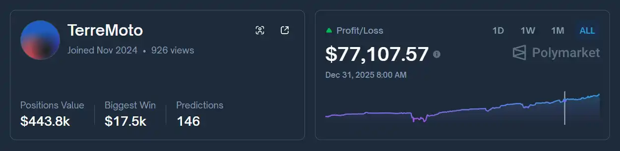 2026 年 1 月底,在清迈的一次采访中,以太坊创始人 Vitalik Buterin 公开谈及自己在预测市场 Polymarket 的交易经历:2025 年,他使用大约 44 万美元的本金,获得了约 7 万美元的利润。