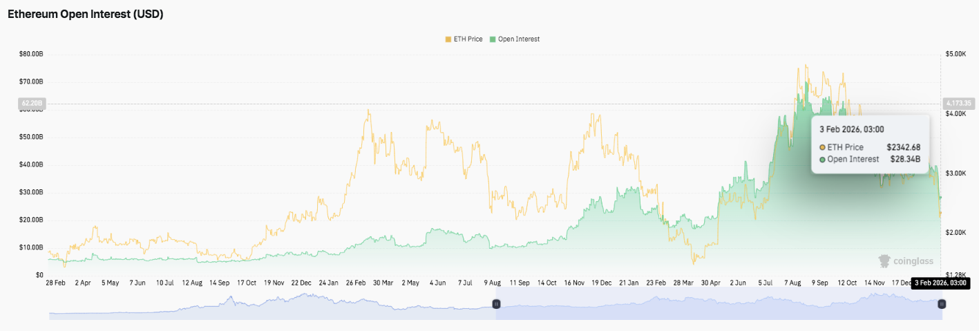 衍生品数据显示,在2025年底的上涨行情之后,杠杆率已完成回落。此前的上涨行情中,未平仓合约大幅飙升,反映出仓位过于集中和投机过度。然而,2月初的急剧收缩表明去杠杆化趋势普遍存在。因此,短期内清算风险似乎较低。