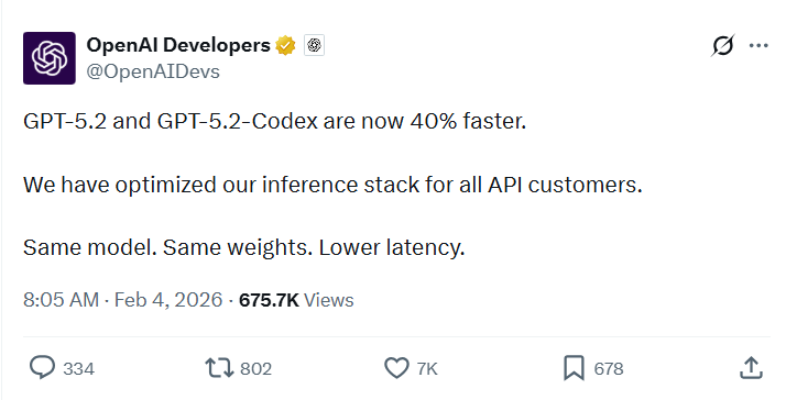 对于开发者和企业用户而言,速度是 AI 编程工具的第一生产力。OpenAI 表示,此次 40% 的速度增量完全源于对推理栈(Inference Stack)的工程化优化。