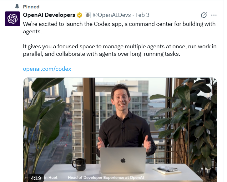 而公司最新发布的 Codex 桌面应用标志着 OpenAI 编程策略的范式转移。不同于传统的对话式界面,Codex 被设计为一个“Agent 指挥部”。