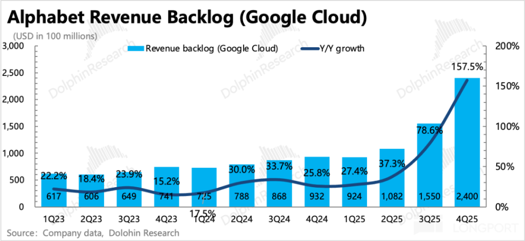 云业务是谷歌AI 重估中的关键支撑,从前瞻角度而言,市场也更关注积存订单的增长情况。