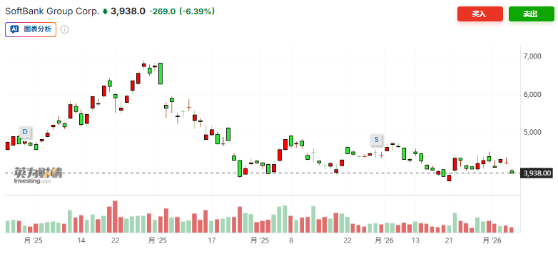 软银集团盘中大跌下挫6.39%,因旗下芯片设计公司Arm第三财季授权销售未达预期。